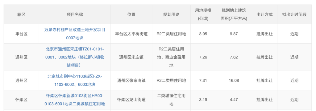 从区域散播来看,中心城区1宗(丰台区)、副中心及平原多点地区2宗(通州区)、生态教养区1宗(怀柔区)。